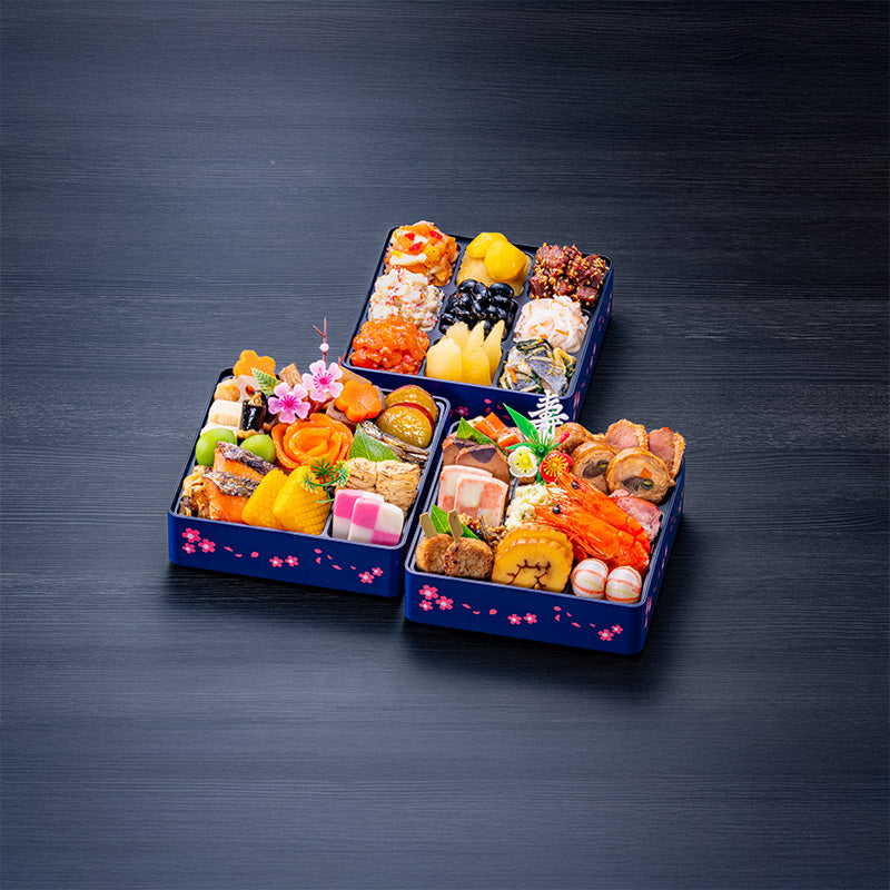 少しずつ色々な食材を楽しみながら、春の訪れを感じられる、可愛くまとまった三段重です。「少量でいいんだけど、やっぱりお正月は少し豪華に・・・」と言うご要望にお応えして、豪華2人前3段重をお作りしました。ご夫婦で、カップルで、小さいお子様のご家庭に最適な商品です。是非、ご賞味下さい。